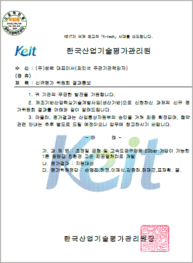 과제명 : 초정밀 금형 및 고속도공구강용 20bar 가압이 가능한